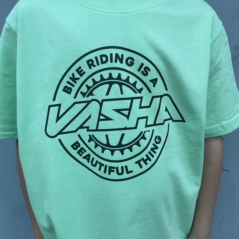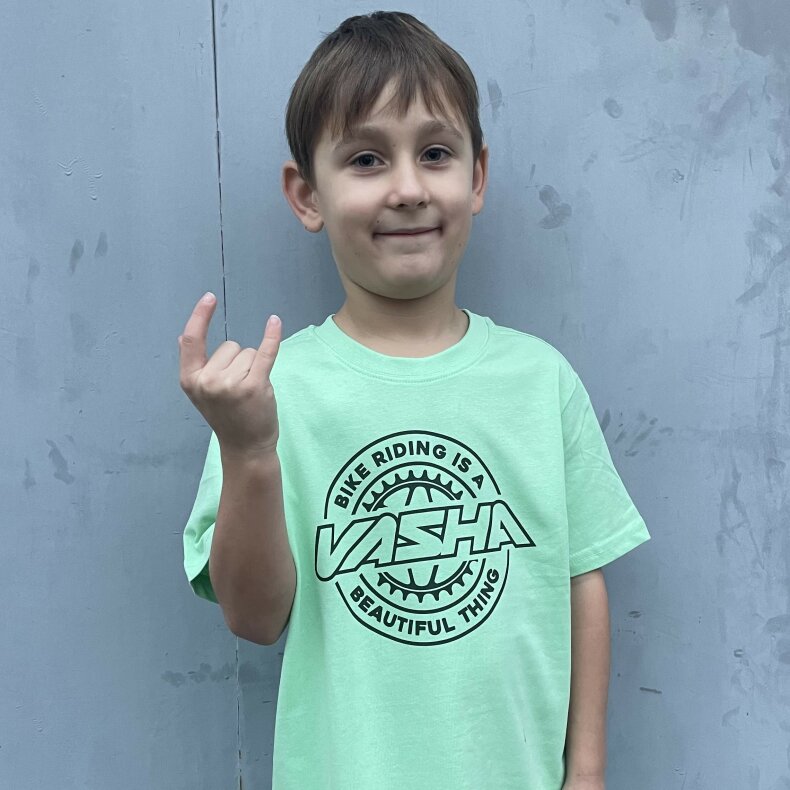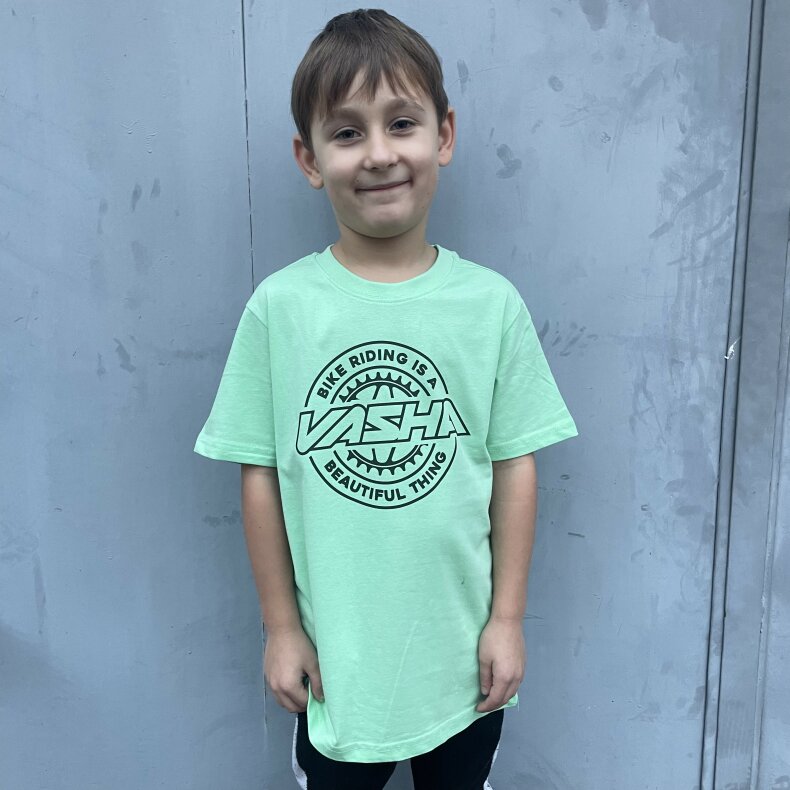 Dětské tričko "Bike Riding is a Beautiful Thing" - Ideální tričko pro děti v líbivé zelené barvě (neomint), které zdobí vepředu kulaté logo Vasha s nápisem "Bike Riding is a Beautiful Thing" v překladu "Ježdění na kole je krásná věc". Triko je pohodlné, super příjemný materiál, vhodné k všednímu nošení, nejlépe se v něm budou mladí bikeři samozřejmě cítit na kole a při tréninku. Tohle prostě musí mít každý stylový rider, který miluje ježdění na kole a chce posouvat svoje bike skills.