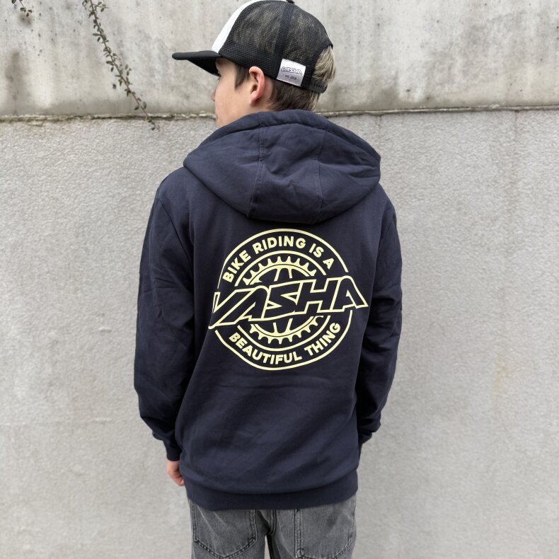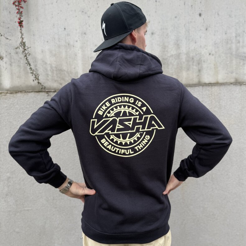 Mikina Vasha "Bike Riding is a Beautiful Thing" – Stylová, kvalitní mikina s kapucí v barvě tmavomodrá (Navy), vepředu s jednoduchým logem Vasha a vzadu kulaté logo Vasha s nápisem "Bike Riding is a Beautiful Thing" v překladu "Ježdění na kole je krásná věc". Mikina je pohodlná, super příjemný materiál, vhodná pro děti i dospělé v několika velikostech. Tohle je Vaškova nová mikča, kterou prostě musí mít každý stylový rider, který miluje ježdění na kole a chce posouvat svoje bike skills.