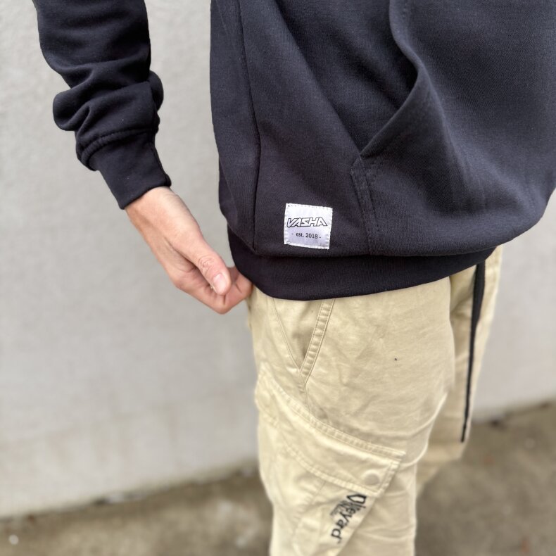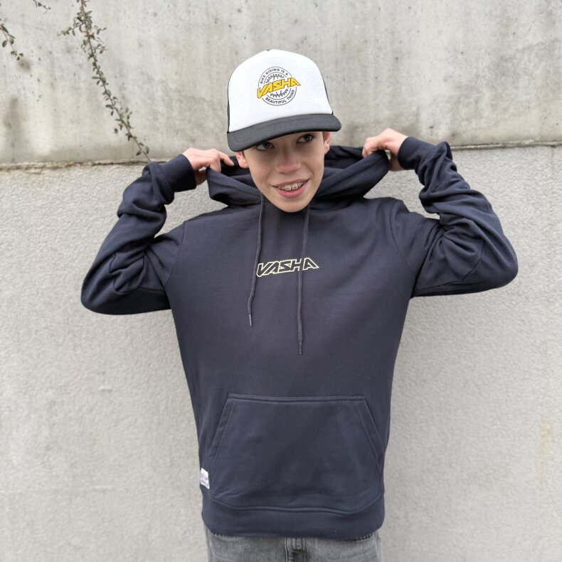 Dětská Mikina Vasha – Stylová, kvalitní mikina s kapucí v černé barvě, vepředu…